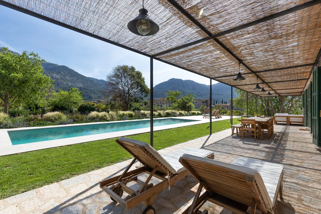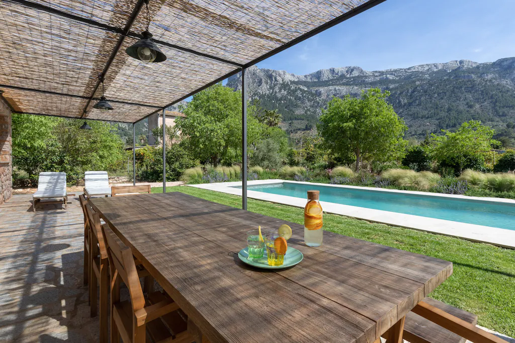 Surrounded by a garden, the house faces a large swimming pool in a quiet environment with views on the Sierra de Tramuntana. The city center of Soller is at a walking distance.