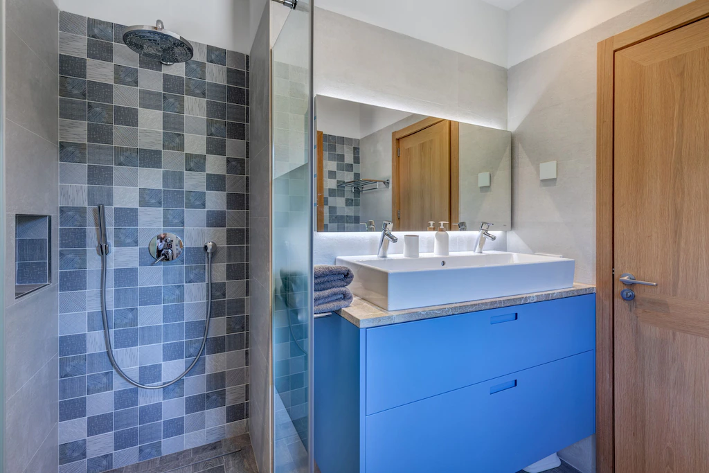 Two rooms are located on the ground floor : they can each hold two people, and are equipped with queen-sized beds. One of the rooms has its own integrated bathroom. The floor also offers another bathroom, next to the second room. Each bathroom has an italian shower and toilets. An independent toilet and a laundry room (equipped with a washing machine and a dryer) are also located at this floor.